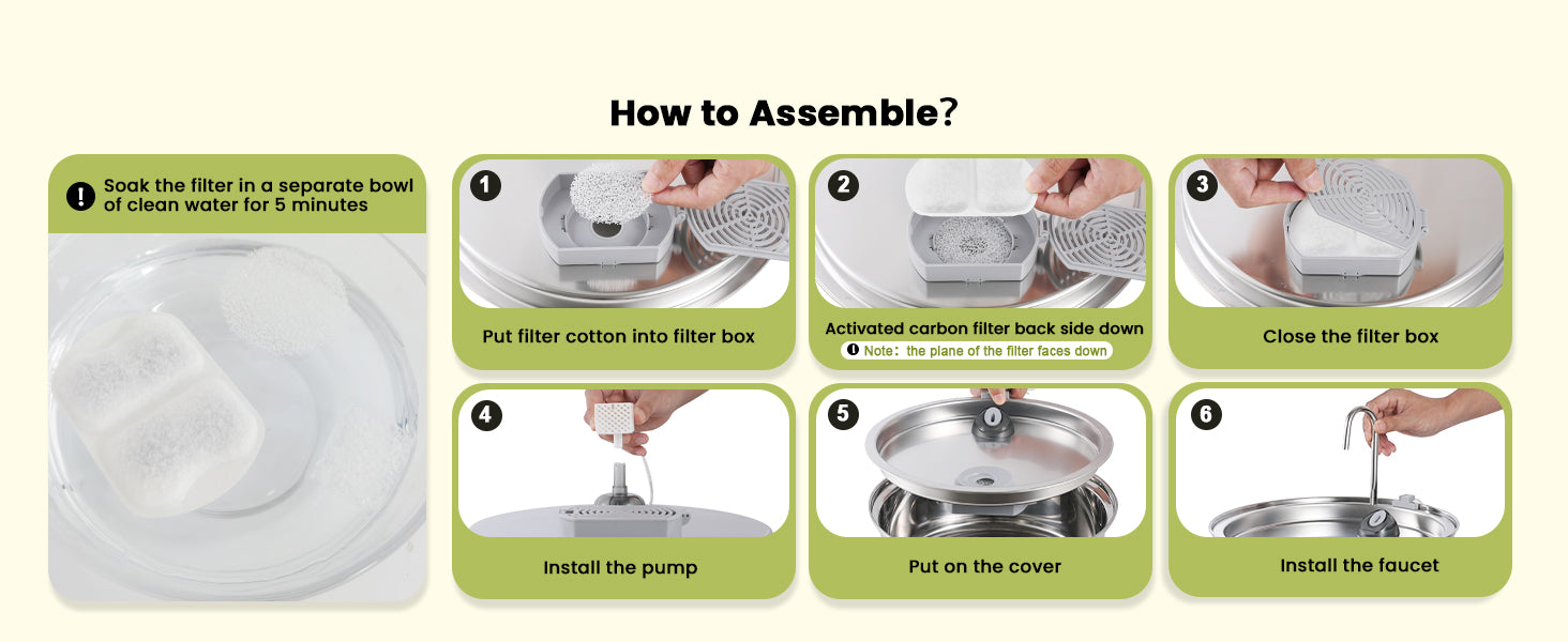 The water pump and dispenser need to be cleaned every 1–2 weeks, every2-4 weeks you need to change the cartridge, we will provide you with 2 extra sets offillters
