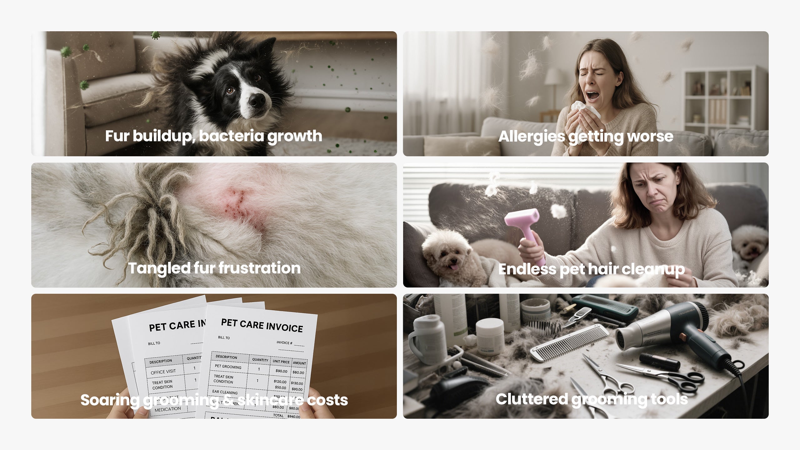 • Grooming Brush: Used to clean floating hair and dander, making the hair more healthy, shiny, and soft.