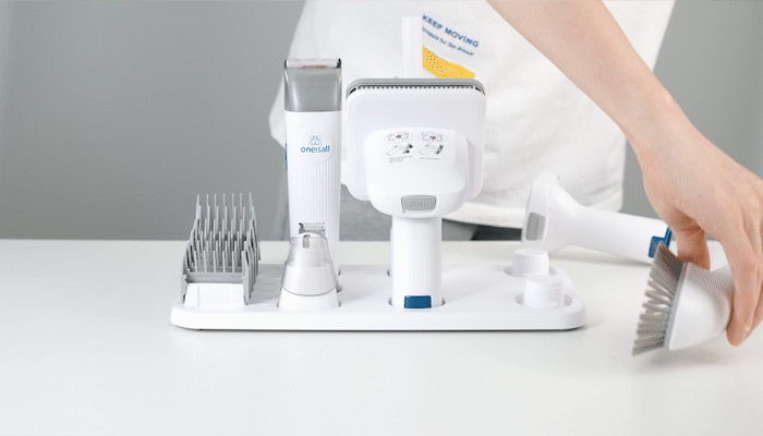 The exclusive rack keeps all grooming tools organized and easily accessible, enhancing grooming efficiency and convenience.